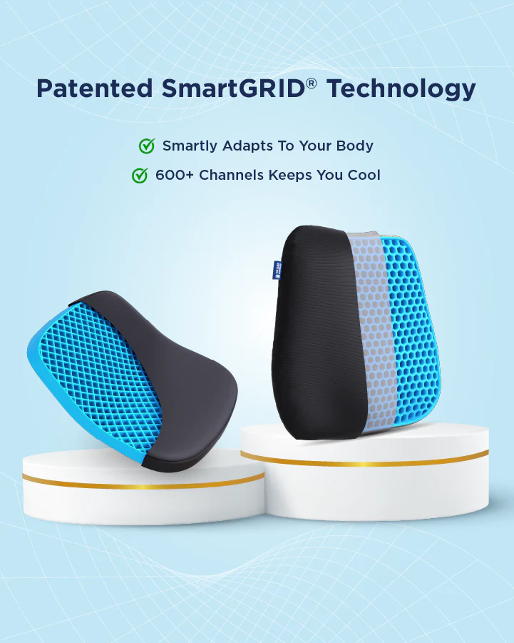 Our ergonomically designed SmartGRID Seat Cushion provides lower back pain relief and improves the overall body posture to provide maximum comfort and support. Ensure your long sitting hours are Comfortable and Efficient.
