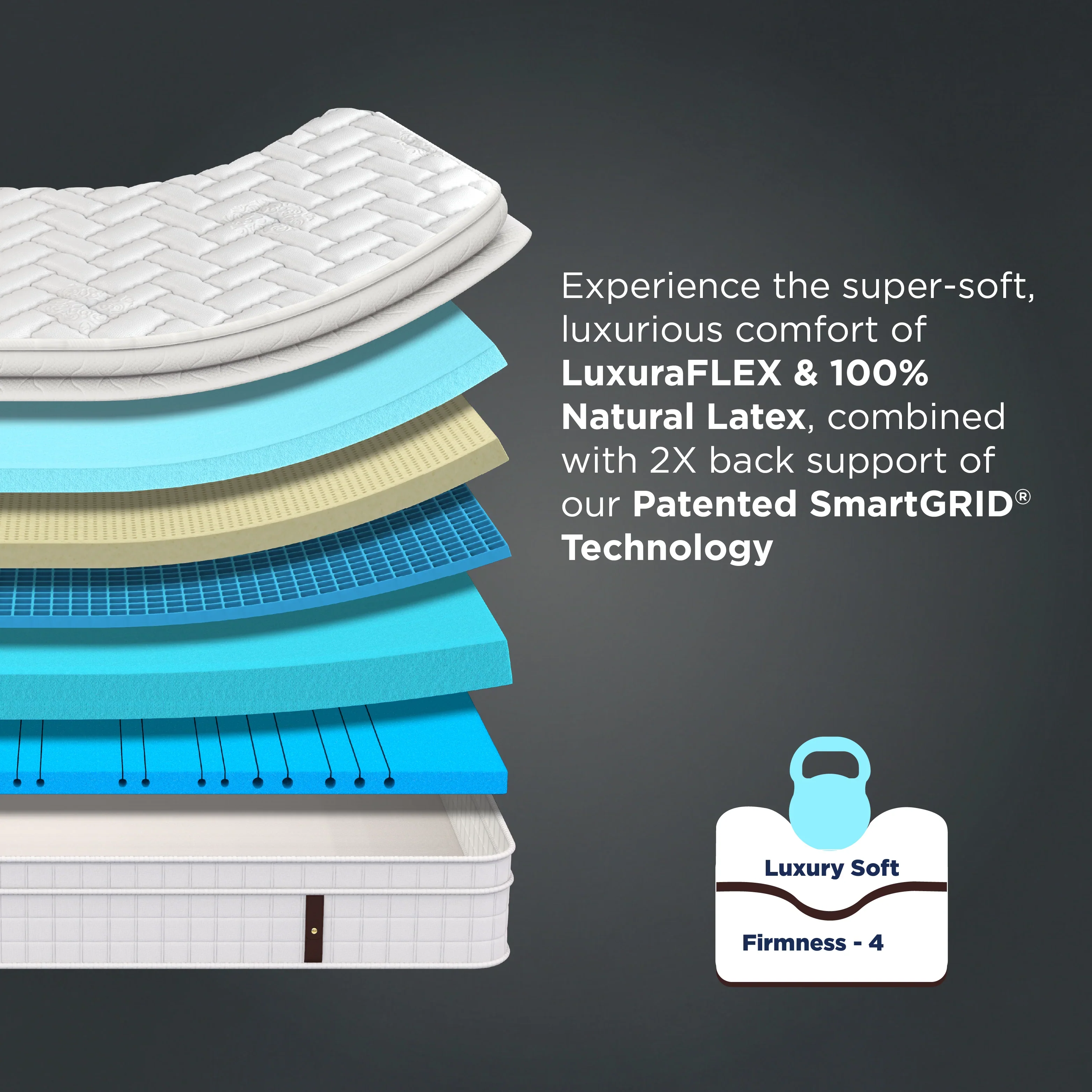 Luxe Royale sets a new standard when it comes to Luxury Sleep Experience. A perfect blend of Adaptive SmartGRID Technology & Plush bouncier feel of Natural Latex makes it the most luxurious mattress ever built on earth. The perfectly crafted high-class Euro Top Design makes it a Masterpiece for your bedroom.