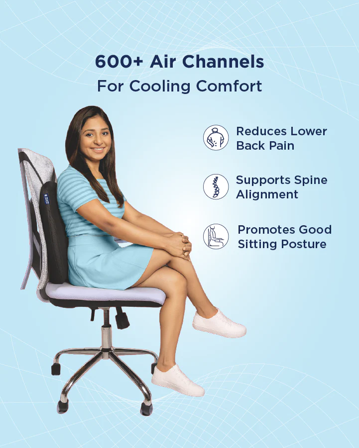 The Sleep Company’s SmartGRID Back Cushion provides superior support & comfort to your lower and middle back, ensuring proper spinal alignment. It relieves back pain, allowing you to sit through long work hours without any discomfort.